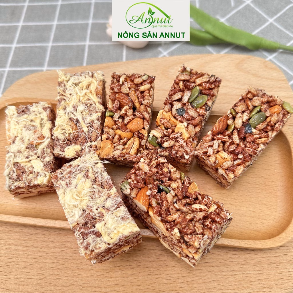 - Bánh gạo lứt chà bông siêu hạt: Công thức nâng cấp với thêm các loại hạt dinh dưỡng như hạt điều, hạt mắc ca.
