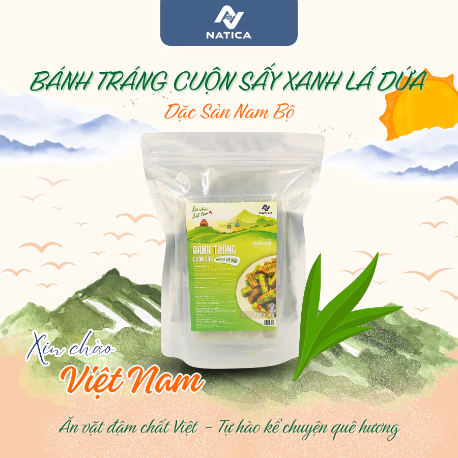 Một trong những sản phẩm bánh tráng sấy giòn chất lượng mà bạn có thể tham khảo là Bánh Tráng Sấy Giòn Vị Xanh Lá Dứa Natica 200g. Sản phẩm này được làm từ nguyên liệu tự nhiên, không chứa chất bảo quản hay phụ gia, đảm bảo mang lại hương vị ngon và an toàn cho sức khỏe.