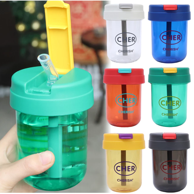 🔥 Bình nước, Cốc uống nước 300ml bằng nhựa PC có ống hút, có nắp đậy cho trẻ em, học sinh, sinh viên… đang giảm giá!