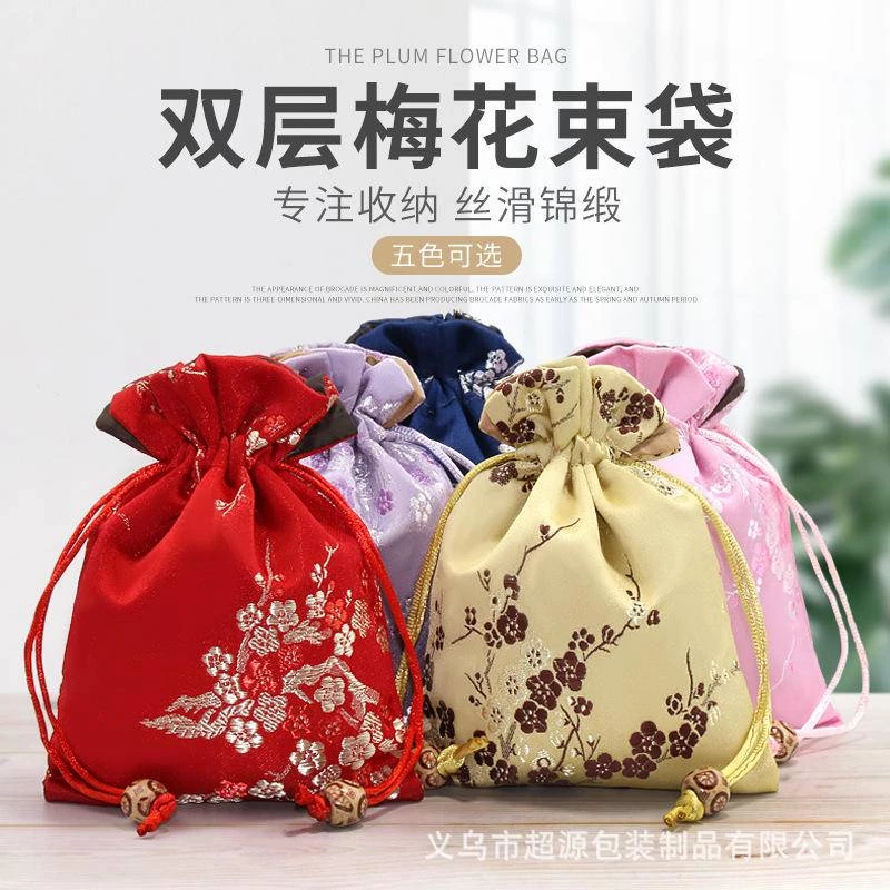🔥 Túi đồ trang sức bằng gấm hoa mận, túi đeo tay, túi hạt Phật, túi bó gấm, túi dây rút, túi kẹo, 12 * 15CM đang giảm giá!