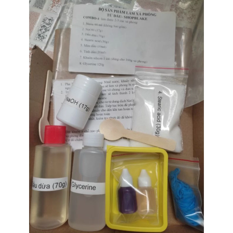 Nếu bạn muốn thử làm xà phòng handmade mà không muốn chuẩn bị nguyên liệu từ đầu, bộ nguyên liệu làm xà phòng từ dầu combo-4 là một lựa chọn tuyệt vời. Sản phẩm này cung cấp đầy đủ các thành phần cần thiết để làm ra một chiếc xà phòng handmade chất lượng.