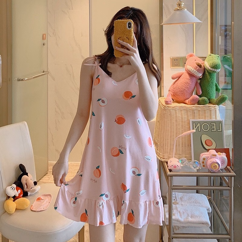 Một số thương hiệu váy ngủ có cung cấp các sản phẩm váy ngủ chất lượng cao và đa dạng về phong cách, như váy ngủ thun hoa {V02}. Sản phẩm này được làm từ chất liệu thun mềm mại, có kích thước từ S đến XXL và có độ dài vừa phải.