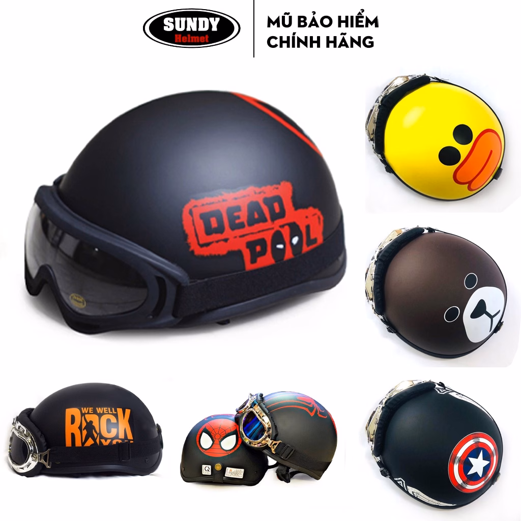 🔥 Mũ bảo hiểm nửa đầu thời trang Kính phi công, Kính UV, mũ phượt tem Nhện hãng SUNDY chính hãng, an toàn, chất lượng đang giảm giá!