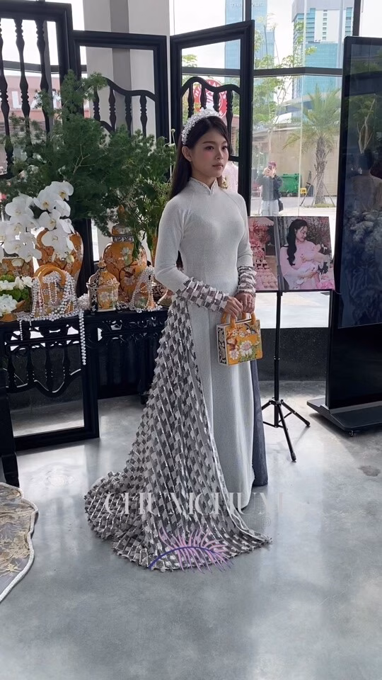 Áo dài, trang phục truyền thống của Việt Nam, với thiết kế tỉ mỉ và màu sắc đa dạng, tiếp tục khẳng định vị thế và sức hút của mình trong lòng người yêu văn hóa Việt Nam cũng như bạn bè quốc tế. Tuyết Nhung thể hiện sự tự tin và duyên dáng khi diện áo dài trong buổi lễ, thể hiện tinh thần bảo tồn và phát huy di sản văn hóa Việt Nam.